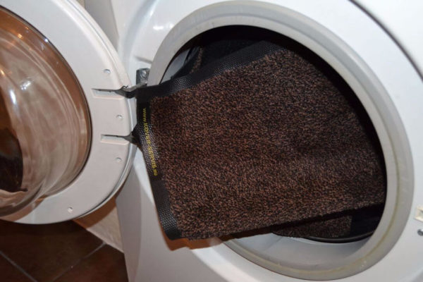 Il est préférable dans ce cas de démarrer le mode de lavage délicat avec une basse température de l'eau. Si vous avez besoin d'un tapis dans un avenir proche, enveloppez-le dans une serviette, le tissu absorbera l'humidité et vous pouvez utiliser un tapis propre et sec.