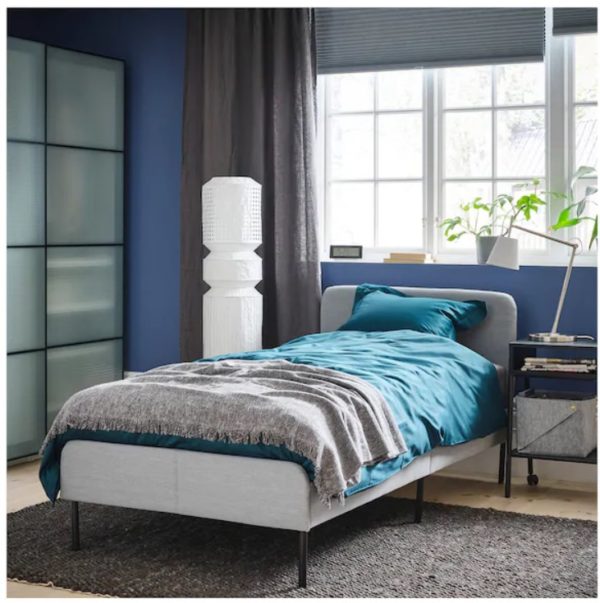 - Le nouveau lit Slattum convient à ceux qui aiment dormir profondément la nuit. Le revêtement du lit est en tissu, vous pouvez donc le laver si nécessaire. Le lit a une tête de lit confortable, vous pouvez donc vous appuyer sur votre lit et lire un livre dans une position confortable avant de vous coucher. Le coût d'un lit est de 9 999 roubles. Le matelas devra être acheté séparément, car il n'est pas inclus dans le package.