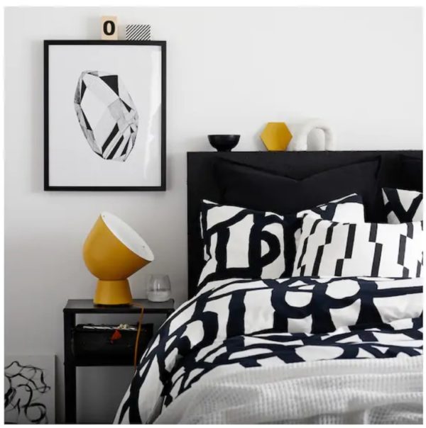 - Vous pouvez opter pour un ensemble de linge en noir et blanc. Il a l'air tout simplement génial et la pièce créera du confort. Le coût de l'ensemble - taie d'oreiller et housse de couette - 1 299 roubles.