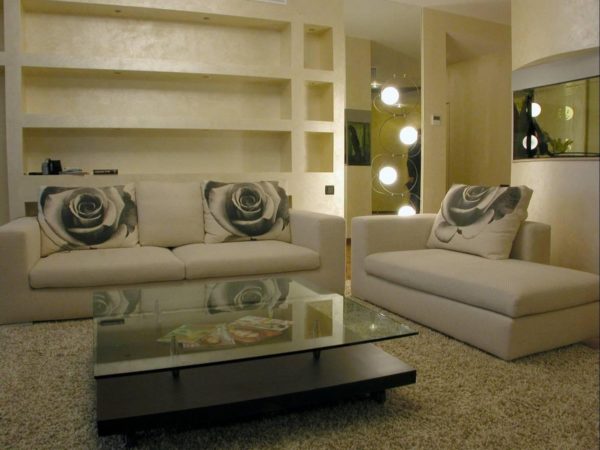 Une autre des choses qui rendent l'intérieur obsolète est la décoration des cloisons avec des éléments de cloisons sèches.
