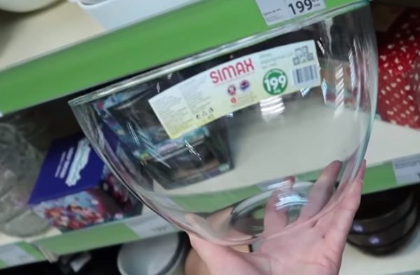 Pendant un certain temps, ces plats n'étaient pas en vente, mais maintenant ils sont réapparus. Le bol est très grand, volume 2,5 litres. Selon le marquage, cette verrerie peut être lavée au lave-vaisselle, congelée, utilisée pour la cuisson au four.