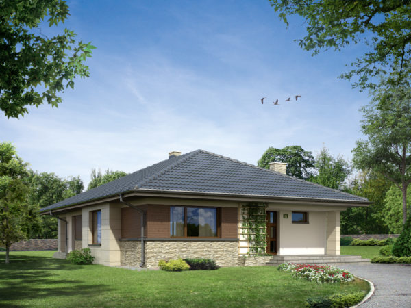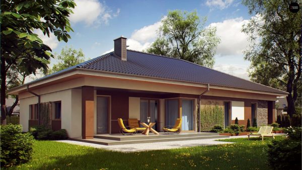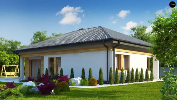 La façade de la maison est magnifique, le toit est rectangulaire, ce qui donne la simplicité de la structure. A l'intérieur de la maison, il y a trois chambres et un salon. À la demande des propriétaires peut être une terrasse. La construction d'une maison ne nécessite pas de gros frais financiers.
