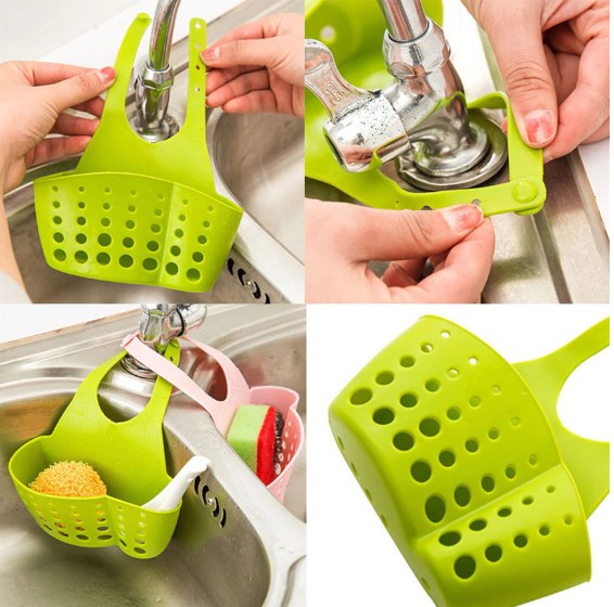 - Des étagères pour l'évier pour 44 roubles permettent de mettre des éponges de cuisine directement dans l'évier.