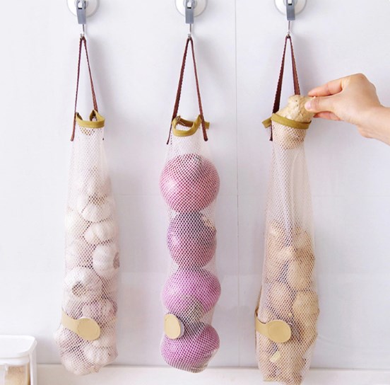 - Les filets muraux pour ranger les légumes ne nécessitent pas beaucoup d'espace en raison de l'emplacement possible le long du mur sur des crochets spéciaux.