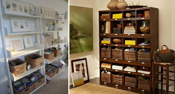 - Les paniers en osier sont un bon endroit pour ranger les gros et les petits articles. Ils s'intègrent parfaitement à l'intérieur, ont fière allure aussi bien sur les étagères que sur le sol.