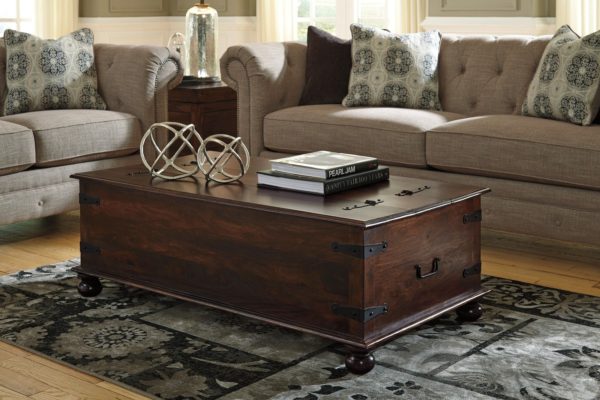 - Une table basse peut être remplacée par un coffre ou une petite table de chevet. En taille, ils seront les mêmes que la table elle-même, mais vous pouvez y placer n'importe quoi. C'est à la fois pratique et beaucoup plus intéressant.