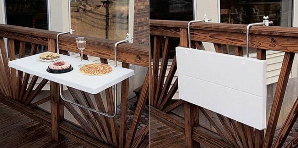 - La table, qui est attachée à la balustrade, peut être installée même sur un petit balcon et ainsi obtenir un endroit confortable pour travailler à l'air frais, si le bureau n'a pas trouvé de place dans la pièce.