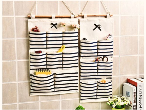 - Des poches à charnières peuvent être placées sur le mur ou la porte intérieure de l'armoire. Un tel accessoire peut aider à rétablir l'ordre dans la maison, toutes les choses nécessaires seront toujours à portée de main. Malgré le fait qu'un tel organisateur soit spacieux, il a toujours l'air drôle et inhabituel.