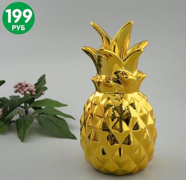 - Ananas doré décoratif. Il contribuera à créer le confort de la maison et apportera du piquant à l'intérieur. Prix: 199 p.