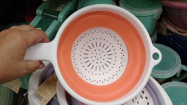 - Passoire extensible. Un accessoire de cuisine idéal qui vous fera gagner du temps lors du pelage des légumes, du lavage et du séchage des fruits, des herbes et autres produits. Il est très pratique de vider le liquide de la casserole avec lui. Le système coulissant vous permet de le fixer sur n'importe quel évier. Prix: 99 p.