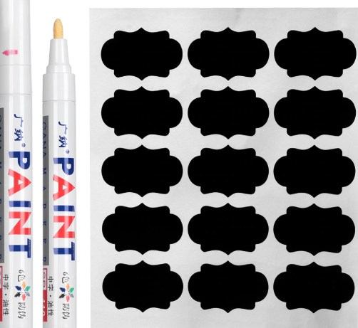 - Autocollants (90 pcs.) Pour la conception de boîtes pour épices. Ils aideront à organiser tout avec style dans la cuisine. Il suffit de les signer avec un marqueur et de coller sur la capacité souhaitée. Conçu pour une utilisation réutilisable. Prix: 142 p.