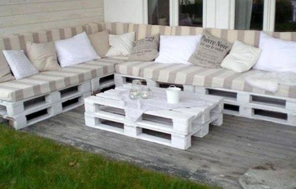 - Vous pouvez utiliser des palettes pour créer des meubles pratiques dans la cour. Ils doivent être traités et vernis. Un banc de palettes transformera l'espace, ajoutera une touche de style et de goût.