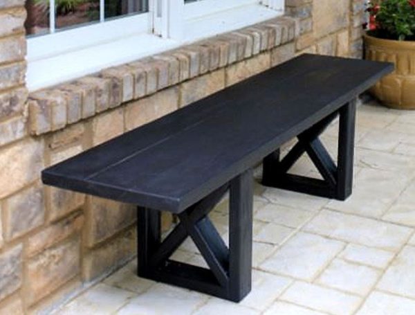 Un simple banc sans aucune difficulté, peint en noir laconique ou aivengo, rendra l'espace de la cour élégant et complet.