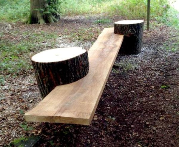 - Un banc brutal et incroyablement élégant se révélera si vous utilisez des cabanes en rondins comme pieds et une planche qui ressemble à un bois non traité. Bien sûr, pour des raisons pratiques, il devra être poncé et enduit de vernis mat.