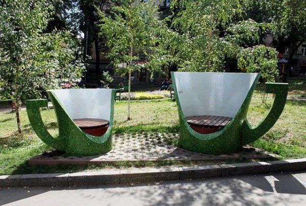Un simple banc peut décorer la cour, lui donner vie et la faire jouer avec de nouvelles couleurs, si vous abordez sa création avec créativité. Cette chose pratique et nécessaire peut également être un point culminant de la composition de la rue.