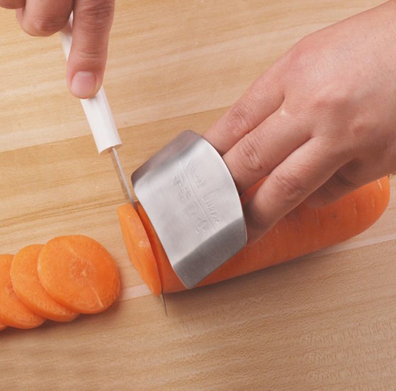 Pour ceux qui se coupent souvent les mains lors de la cuisson, il existe une solution - un protège-doigts en acier. Il vous permettra de hacher rapidement les produits, sans vous soucier de la sécurité. Le prix n'est que de 50 roubles.