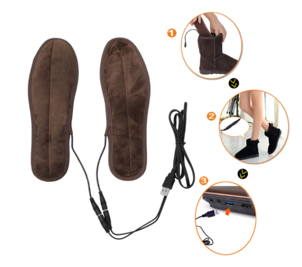 - Si vous vivez dans une région au climat froid, vous aurez peut-être besoin de semelles chauffantes alimentées par une charge USB.