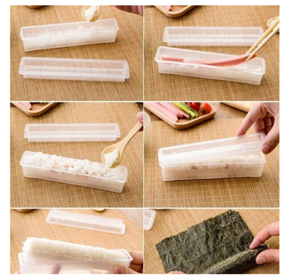 Vous pouvez mettre du riz dans le moule, puis tout transférer sur du papier spécial pour faire des rouleaux. Le coût de la machine est de 111 roubles.