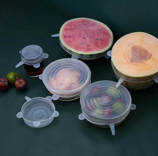 - Couvercles en silicone extensibles qui peuvent être utilisés pour stocker des aliments dans le réfrigérateur.