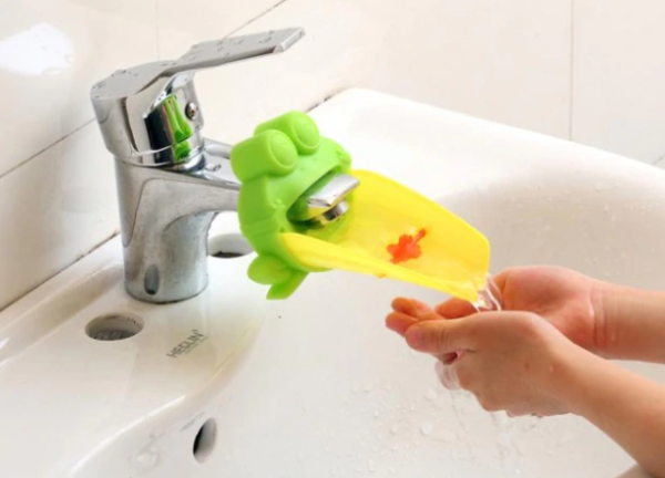 Obtenez une buse pour la grue que l'enfant était à l'aise et l'eau ne pulvérise pas lors de l'utilisation.