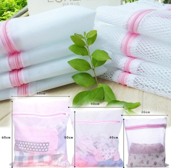 - Sacs en filet pour laver des vêtements de différentes tailles.