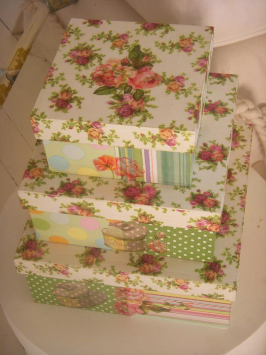 - Commode. Si vous souhaitez donner à l'ancienne commode des couleurs vives, vous devrez préparer plusieurs types de papier peint. À partir d'eux, vous devez découper des carrés de la même taille et les coller sur les tiroirs.