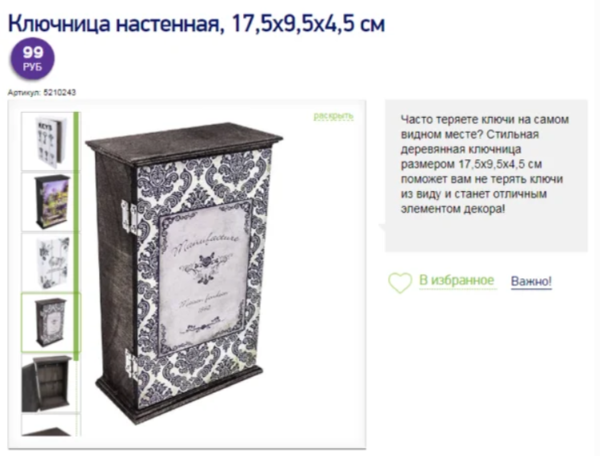 Porte-clés mural, prix 99 rub.