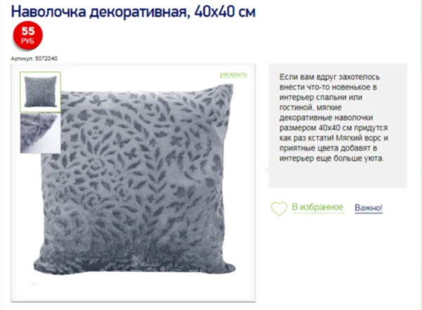 Taies d'oreiller décoratives, à partir de 55 rub.