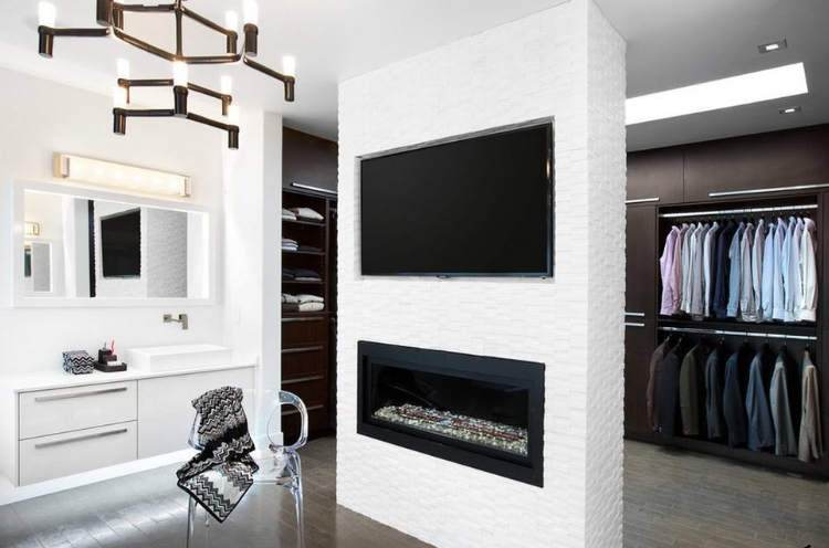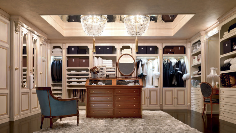 Mais dans la conception d'armoires plus grandes, vous pouvez également fournir un espace spécial pour le montage avec un grand miroir en hauteur et un petit espace pour la détente, au cas où vous voudriez intimité et silence.