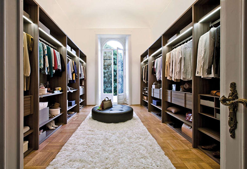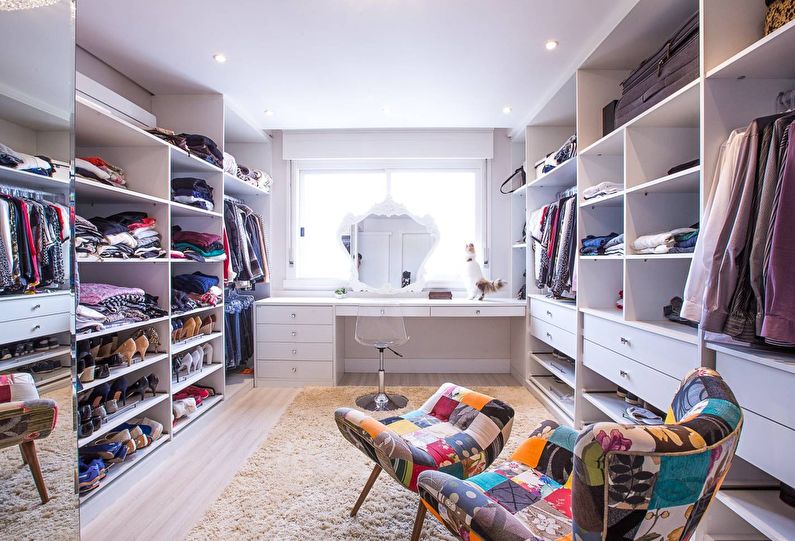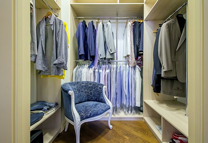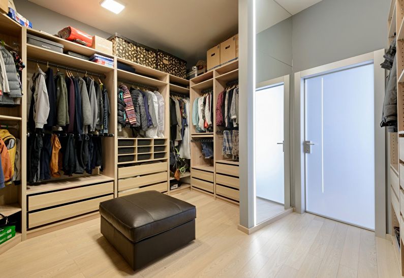 Le plus pratique du point de vue de l'utilisation du dressing est son emplacement à côté du salon. Cependant, si cela n'est pas possible, le garde-manger peut être transformé en dressing.