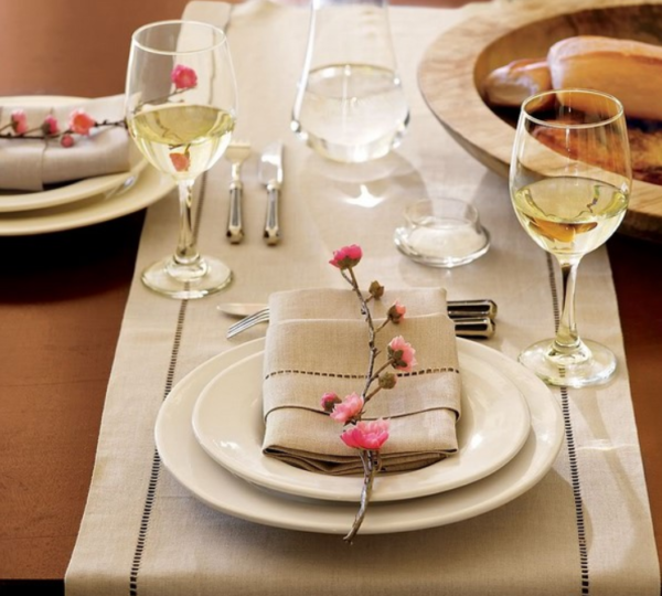 Les tons de base dans la disposition de la table peuvent être neutres, par exemple, beige ou blanc laiteux.