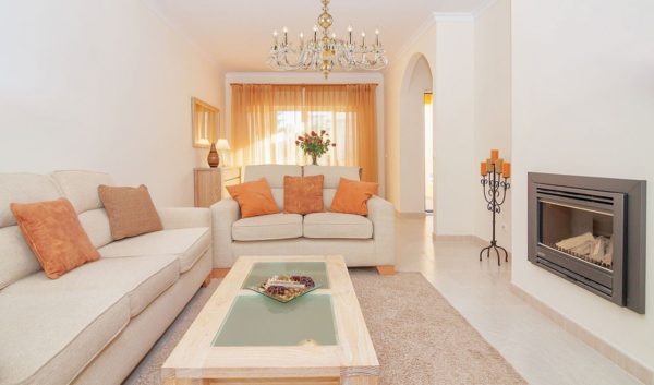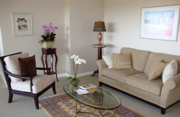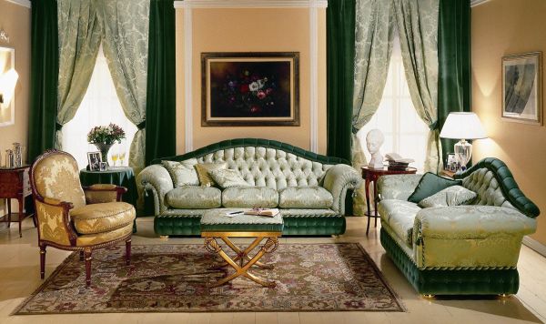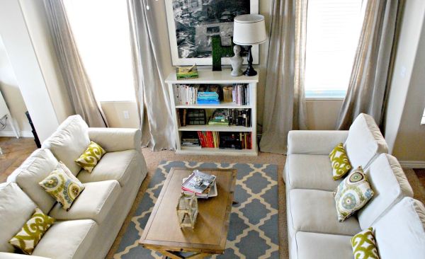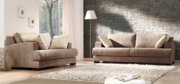 - Deux canapés doubles sont généralement placés l'un en face de l'autre ou avec la lettre «G», puis il y aura de l'espace entre les accoudoirs pour une petite table ou un lampadaire.