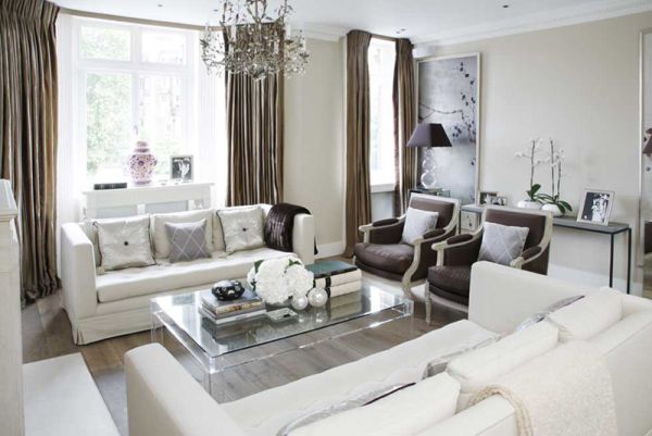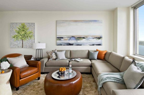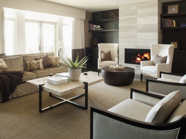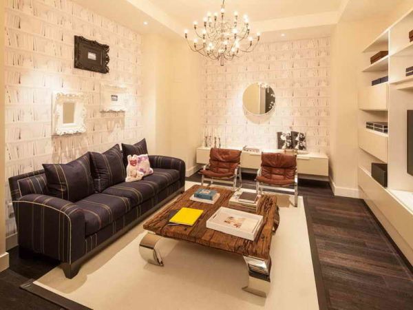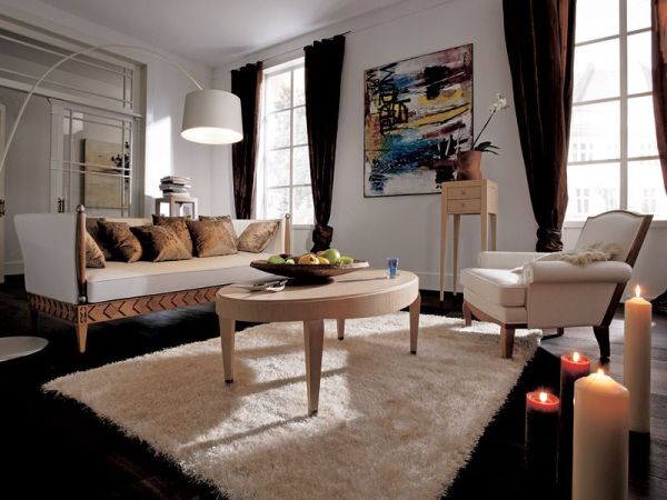 - Vous ne pouvez pas placer de meubles autour du périmètre de la pièce, même si la pièce est petite, cette disposition la rendra encore plus encombrée. Il est préférable d'installer un canapé et des fauteuils au centre du salon, près d'un des murs, vous pouvez mettre un bureau, une bibliothèque.