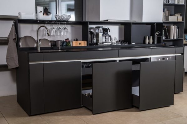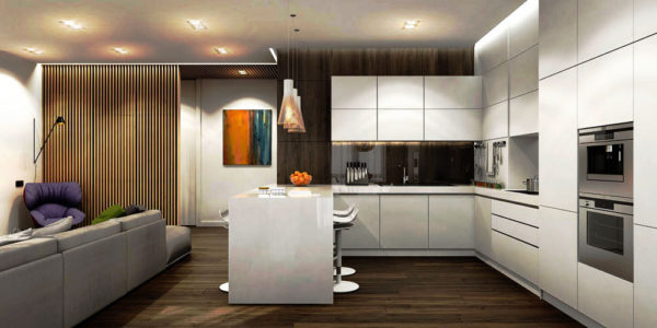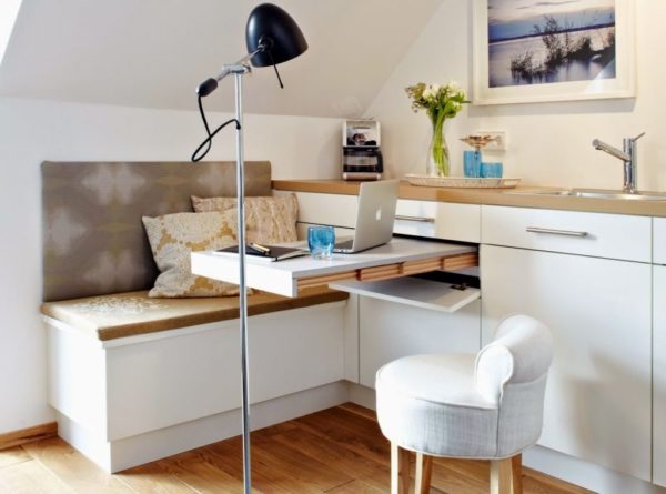 - lors du réaménagement d'un petit appartement, tout en combinant le salon avec la cuisine;