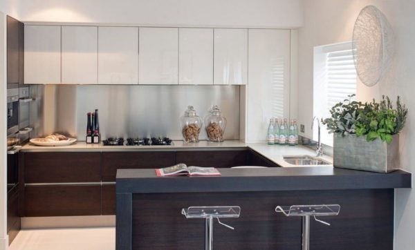 La cuisine en U convient aux grandes pièces sous forme de carré ou de rectangle.