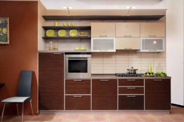 - faites attention au fait que la profondeur de toutes les armoires du meuble de cuisine ne doit pas dépasser 50 cm Dans les cas extrêmes, la cuisine occupera une grande surface;