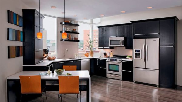 Il en va de même pour le réfrigérateur, s'il est intégré aux meubles de cuisine. Faites attention au côté sur lequel la porte du réfrigérateur s'ouvre. Il devrait s'ouvrir de la surface de travail. Sinon, chaque fois que vous prenez des aliments dans le réfrigérateur, vous devez contourner la porte. Cela augmente les risques de chute ou de blessure.