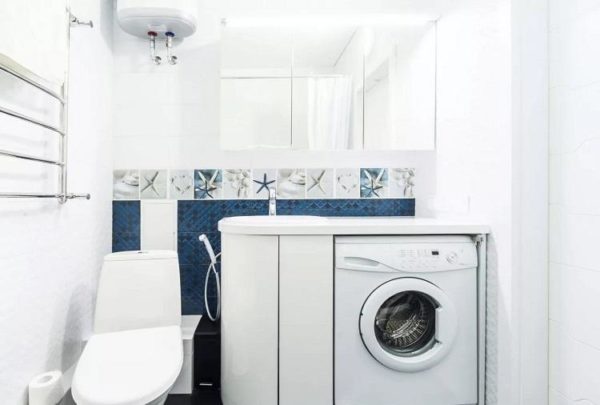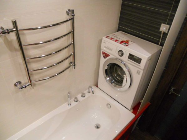 Avec une superficie suffisante de la pièce, l'unité est installée près des toilettes, seul le modèle est choisi avec chargement de linge par le haut.