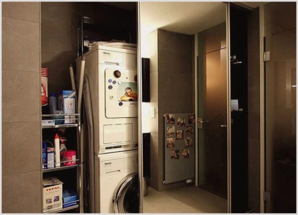 Si l'espace pour le dressing est réservé dans un petit appartement, une unité de lavage peut y être installée (à condition que le débarras soit à l'extérieur du séjour).