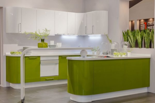 L'aspect d'origine, la brillance et la facilité d'entretien sont les principaux avantages d'une cuisine en acrylique. Pour la première fois, de tels meubles sont apparus en Italie, mais après quelques années, les casques ont commencé à être rapidement popularisés dans le monde entier. En raison de la combinaison de la qualité et de la fiabilité, le matériau a pu déplacer les cuisines en bois dès le départ.