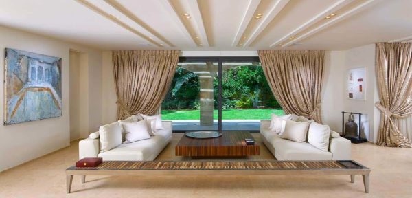 - pour décorer le plafond doit utiliser des stores froids. Des tonalités telles que le bleu, le violet ou le vert aideront à augmenter visuellement sa hauteur;