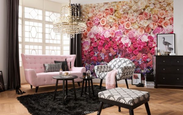 Cependant, la pièce dans laquelle vous allez coller le papier peint doit être conçue dans le même style. L'abstraction détruira les classiques, les motifs floraux ne seront pas en harmonie avec un intérieur minimaliste et autres.