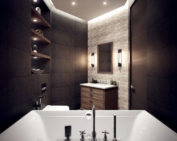 - L'éclairage dans le jacuzzi ou la douche est facultatif, mais s'il est disponible, il créera une atmosphère romantique et intime. L'espace jacuzzi dans la salle de bain doit au contraire être éclairé par une lumière romantique faible et tamisée, qui créera une atmosphère relaxante. L'éclairage du podium est superbe, si cela est prévu par la conception.