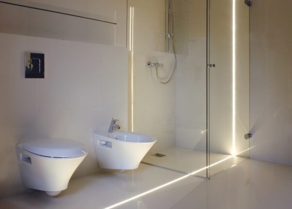 Lumières LED encastrées au sol et murs dans la salle de bain