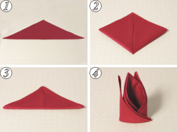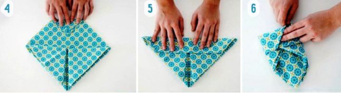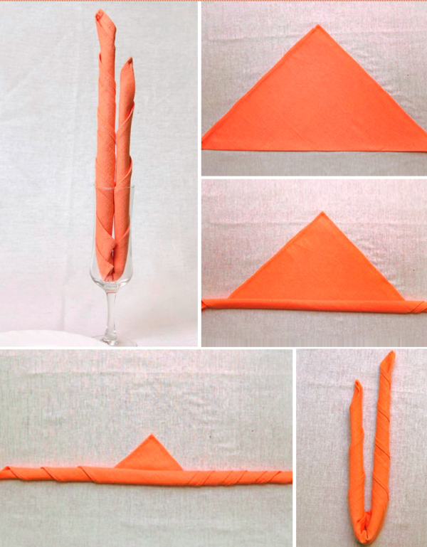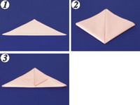 - Pliez la serviette en forme de triangle, enroulez-la par le bas.