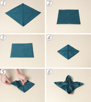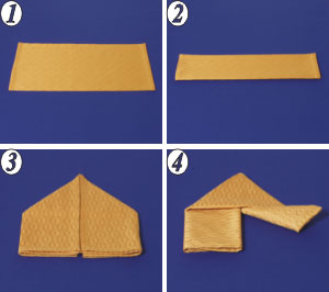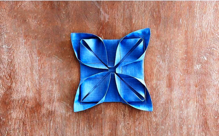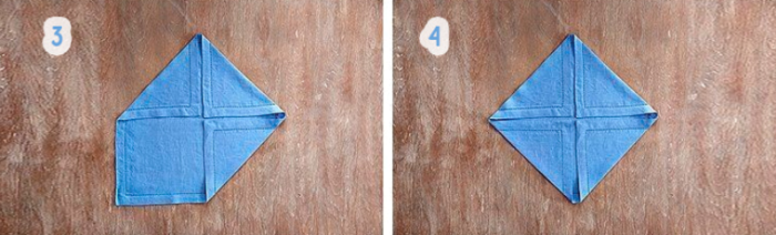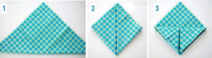 - Pliez la serviette en deux fois deux, nous obtenons un carré.