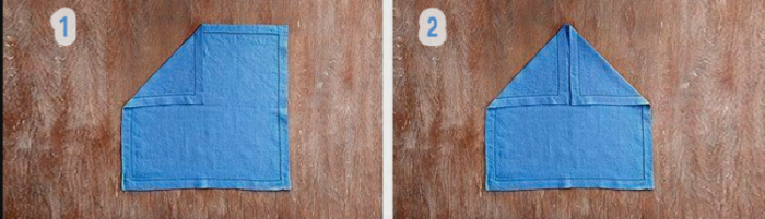 - Nous plions la serviette en deux, transférons les bords supérieurs au centre.