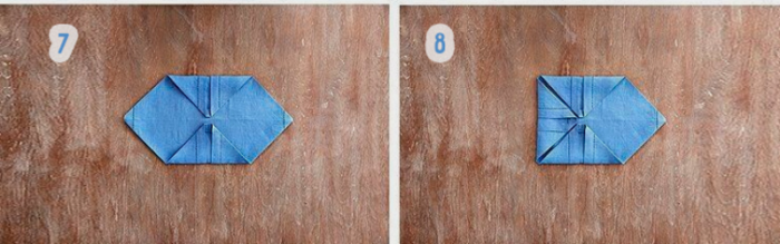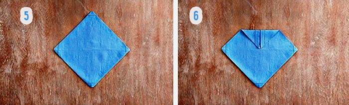 - Nous plions le haut vers le centre, faites-le 2 fois.