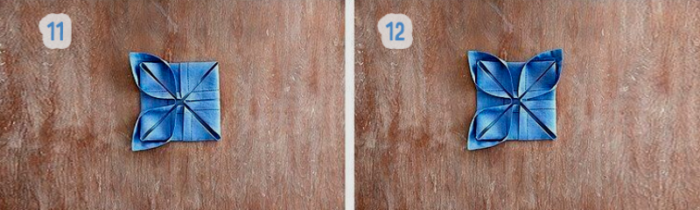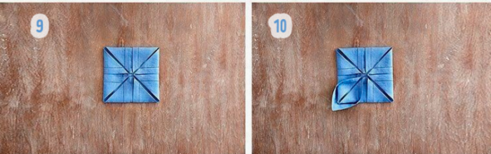 - Nous plions les coins vers le centre. Nous le faisons encore une fois.