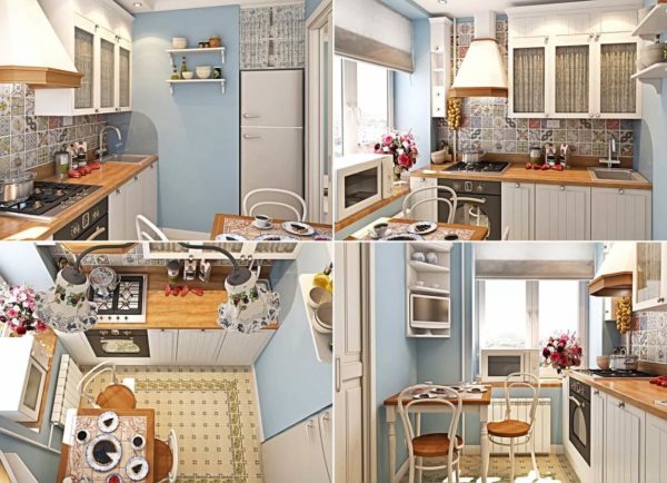 Toutes les hôtesse ne sont pas l'heureux propriétaire d'un appartement avec une cuisine spacieuse. Les anciens projets de la période soviétique allouaient une très petite surface pour la cuisine et la restauration. Cependant, même une minuscule cuisine peut être anoblie avec l'aide de la «magie» du designer. La transformation sera construite en raison du jeu de la couleur, de l'originalité du style moderne et d'autres astuces.